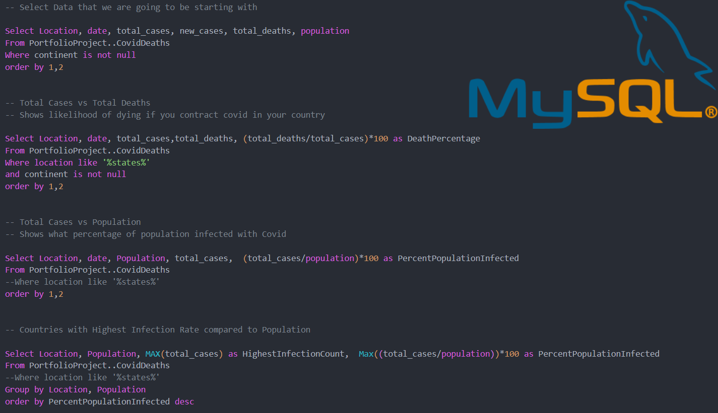 Utilized SQL to perform in-depth EDA on COVID-19 datasets.